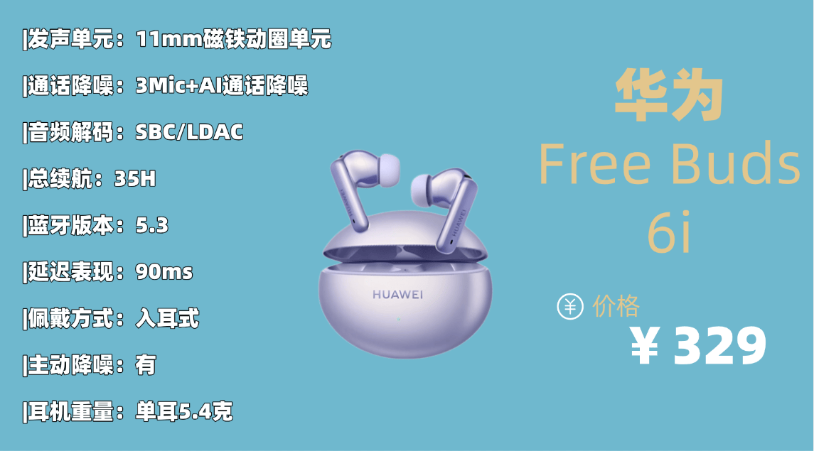 综合标杆品牌2.华 为F ree Buds 6i蓝牙耳机