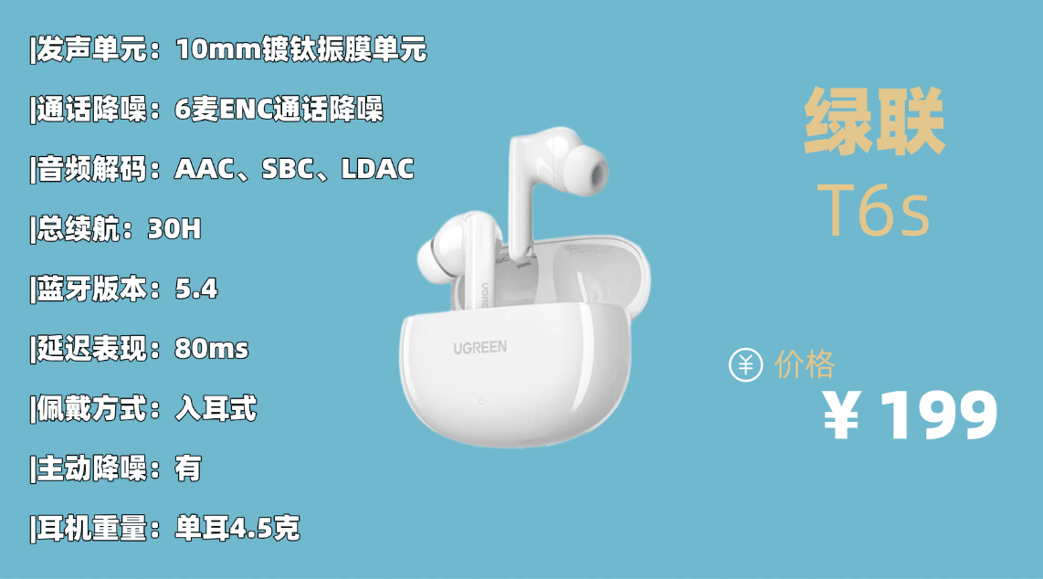综合标杆品牌6.绿 联T 6s蓝牙耳机