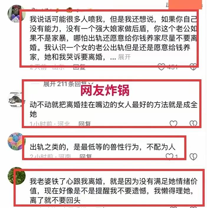 还有网友说:“男的再好,伤到心了,也不会回头的。这人,也太过分了,后悔也来不及了。”