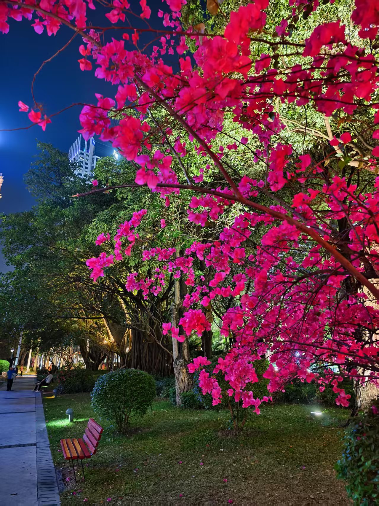 好久没有来逛花城广场了,作为CBD的公园,从夜幕降临到小蛮腰的亮点,再到喷泉十分钟效应,这木棉花的广州还是很迷人,现场人来人往,也许很多人都在这里得到暂时的放松吧。