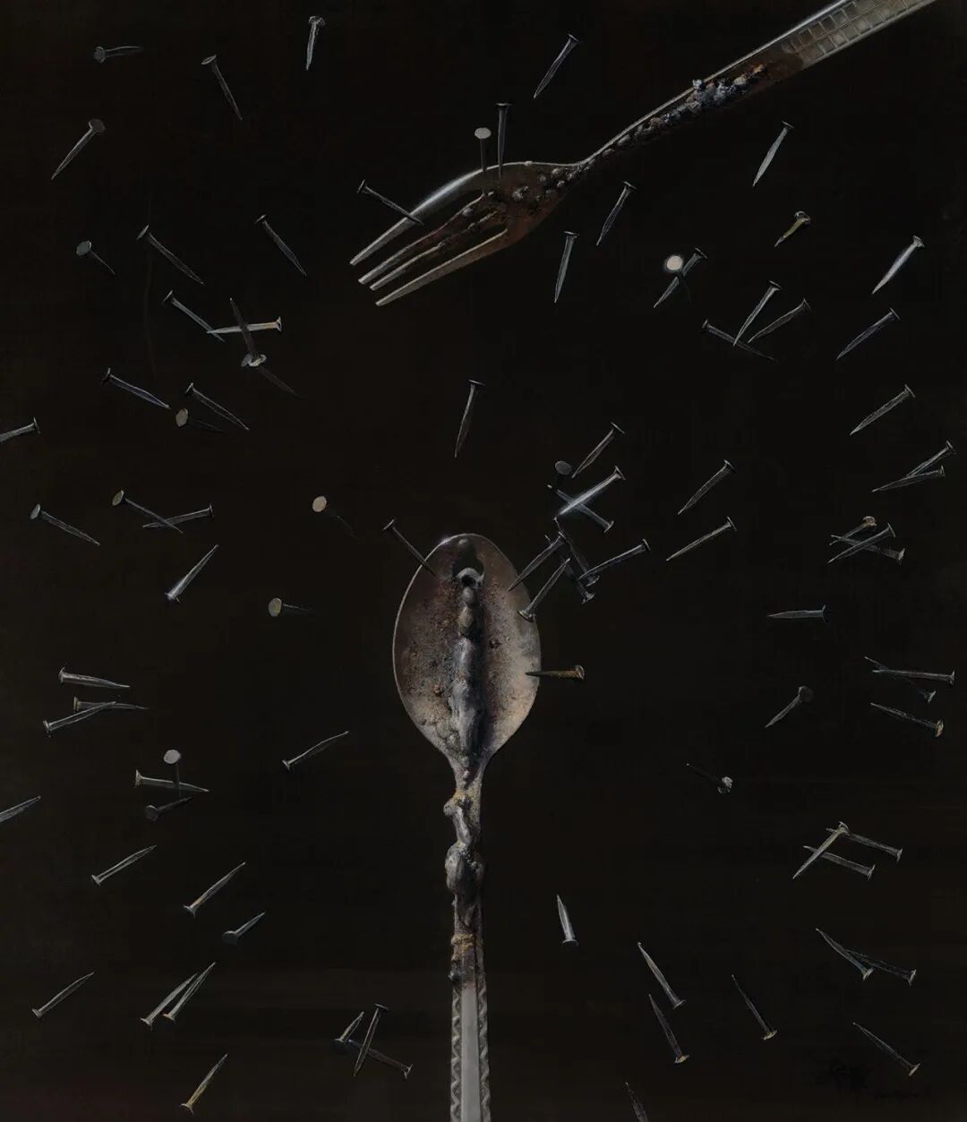 冷军 1963年生于四川,1984年毕业于武汉师范学院汉口分院体育艺术系。原武汉画院院长、武汉美协主席、全国美协会员、中国油画艺委会委员、中国油画学会理事、国家画院研究员。第十一、十二、十三届全国美展评委。代表作《世纪风景》系列,《文物一一新产品设计》,《五角星》系列,《突变一一有刺的汤匙》系列等。