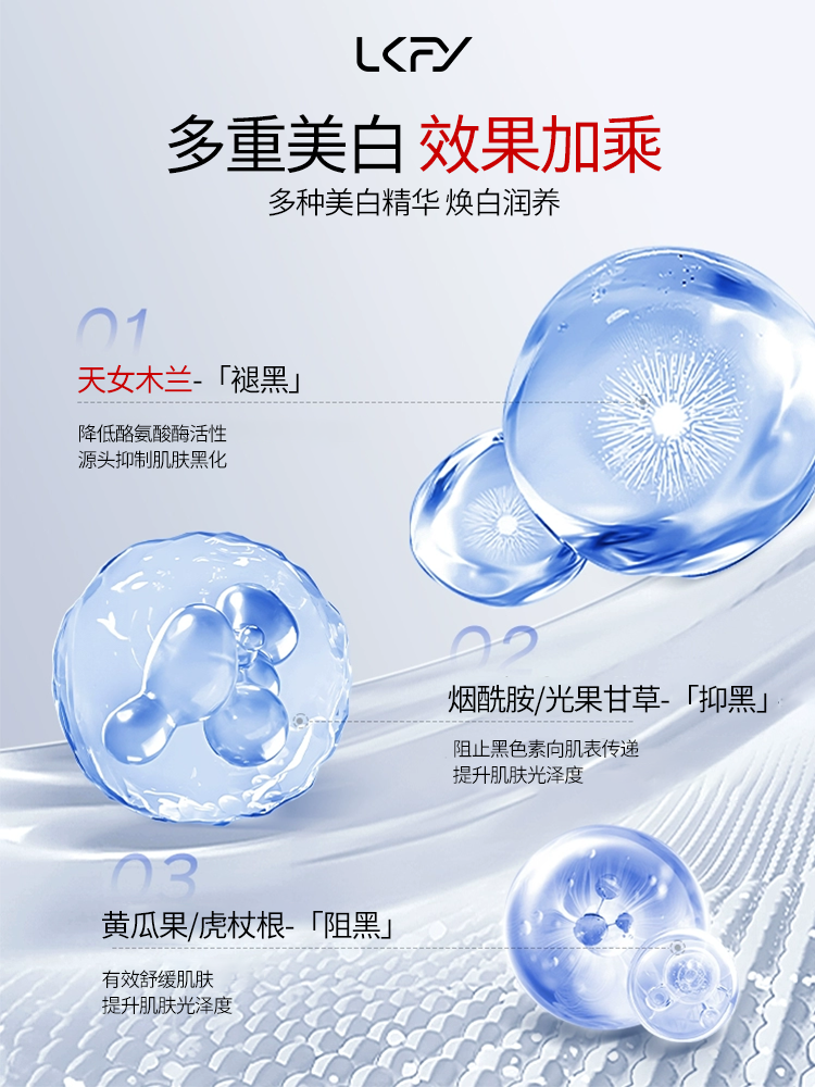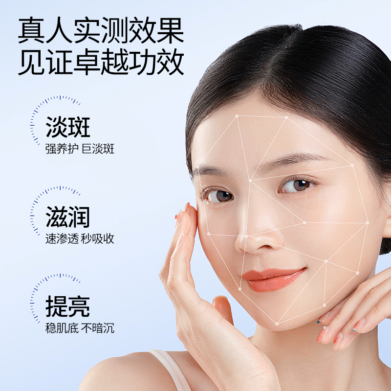 提升弹性与光泽:植萃成分不仅能高效祛斑,还能显著改善肌肤弹性,瞬间恢复肌肤光泽。