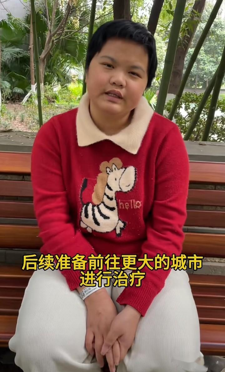 视频里她也表达了自己的下一步计划,后续准备前往更大的城市治疗,目前只是一个止血的阶段,并不是治疗好了。