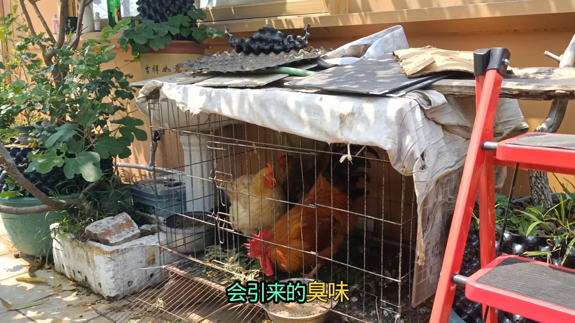 我家的鸡粪鸡窝现在连苍蝇都没有,更别说臭味了,只要鸡粪不湿,鸡粪就不会产生臭味以及虫子的问题。因为我的方法现在已经验证了,有两三两年多了,我觉得已经基本上可行了。所以我最近也在想着要不要再多增加两只鸡,去到5只左右。我觉得5只鸡差不多就是我楼顶养花的肥料的极限了。