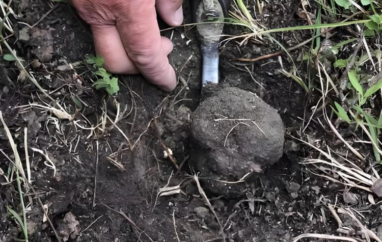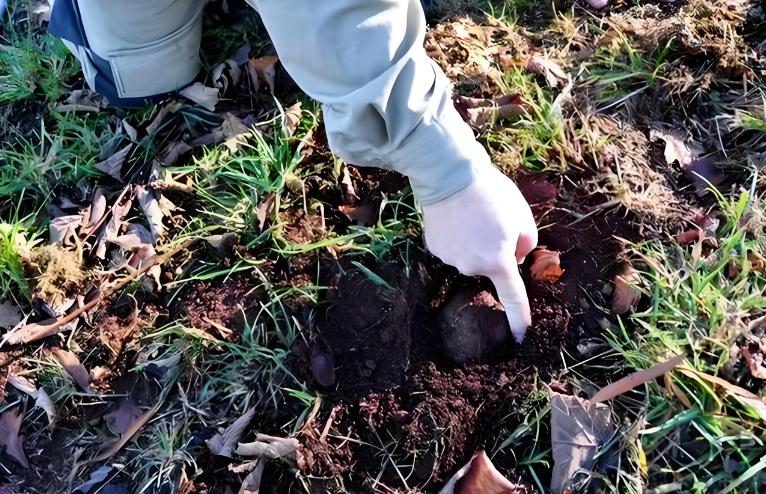 野草的颜色不太一样或者是地面鼓包,就说明这里极大可能藏着黑松露,拿工具挖一挖八成就会有收获。