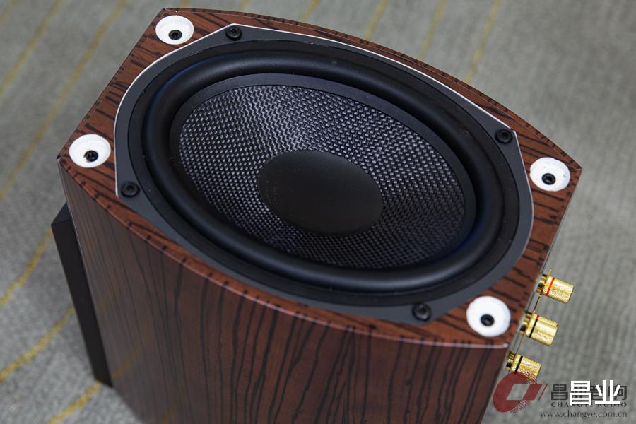 为补全低频下潜,音箱配置了一只6×9英寸的椭圆形锥盆低音单元。椭圆形设计一方面减少了单元在箱体上的安装面积,另一方面又能提供接近更大尺寸圆形单元的能量感,从而使箱体得以实现优雅纤巧的造型。该设计不仅最大化振膜辐射面积,也显著提升了刚性与共振控制能力。