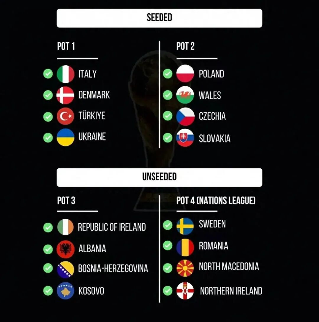 本届欧洲区附加赛16队分4组,每组4队通过两场半决赛、一场决赛争夺1张世界杯门票,全程单场淘汰,90分钟战平则加时、点球决胜。波兰作为世预赛小组第二、种子队握有主场优势,阿尔巴尼亚则是队史首次闯入附加赛,以“黑马”姿态冲击正赛。对波兰而言,这是莱万等老将冲击世界杯的最后机会;对阿尔巴尼亚,突破历史、创造奇迹的战意丝毫不逊,且无战绩包袱,更易轻装上阵。