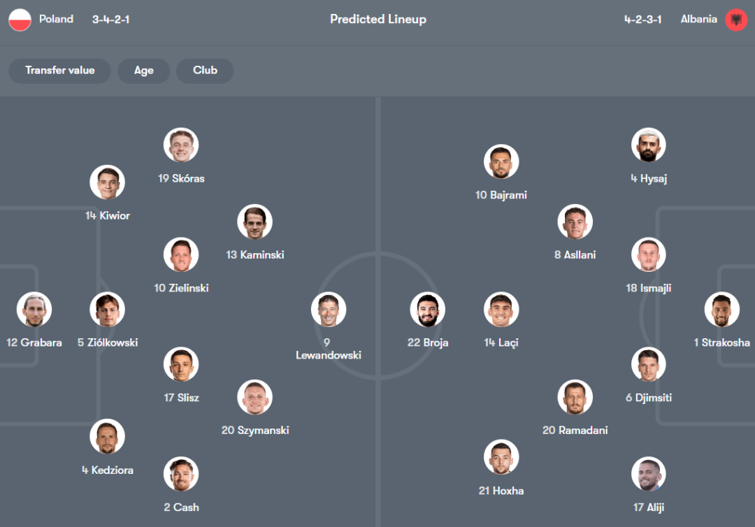 历史交锋近些年波兰3胜1负占优,2023年客场0-2不敌阿尔巴尼亚,证明对手绝非鱼腩。阿尔巴尼亚虽底蕴不足,但近年防守体系成型,欧洲杯、欧国联多次逼平/小负强队,客场“以弱克强”的韧性远超纸面排名。