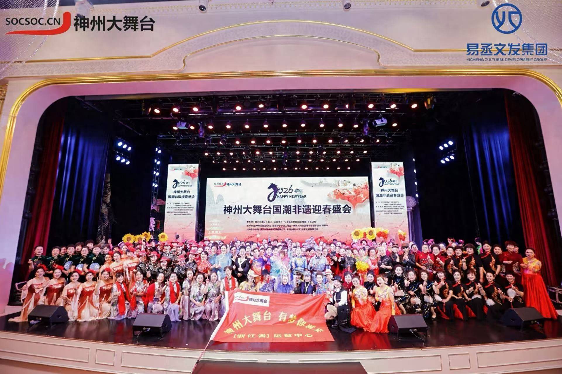 “神州大舞台26年年度盛典”在实际执行层面,具体表现为“神州大舞台国潮非遗迎春晚会(宁波站)”。该活动于2026年1月31日(农历正月初十)在宁波罗曼丽舍宴会酒店隆重举行。