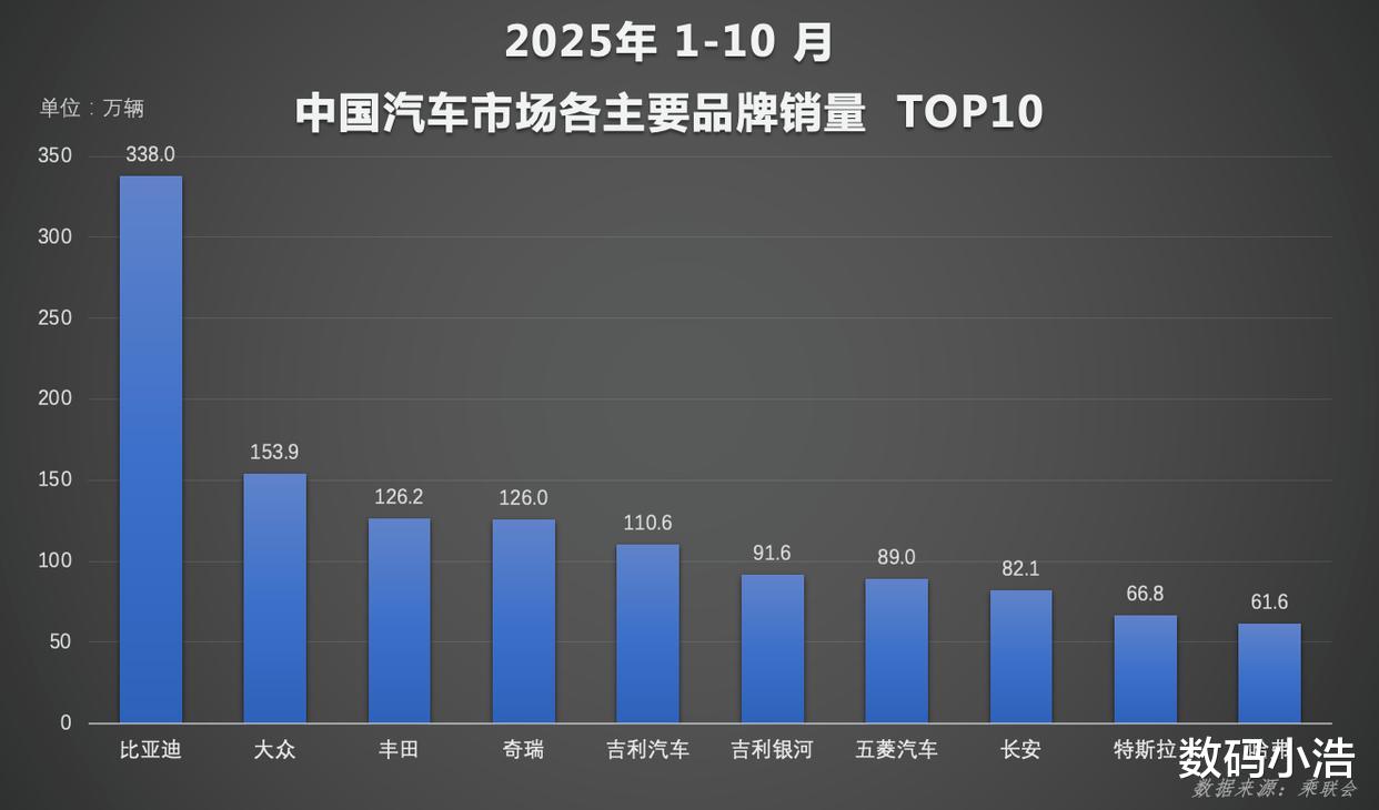 中汽协数据显示,10 月新能源车销量占比首超 50%,正式进入新能源主导时代。比亚迪优势超明显,前十月销量快赶上行业第2-4名总和,王朝网、海洋网累计还卖了338 万辆,根基超稳。