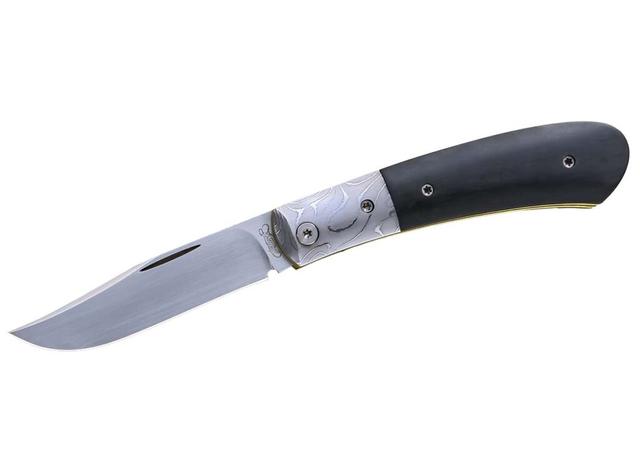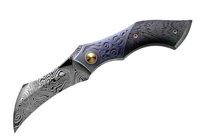 刃长: 3 3/8”刃材: 由ABS JS技师迈克·泰尔锻造的羽毛大马士革开刃方式: 凹磨叶片类型: 剪辑点打开方式: 指甲刻痕推动柄:猛犸象牙内衬和垫枕: 一体式结构中的416不锈钢雕刻: 爱丽丝·卡特,包括24K金镶嵌更多信息: 背花内衬和像树叶盾闭合长度: 4.25”作者一把类似刀的价格: $2,800作者: Stanley Buzek