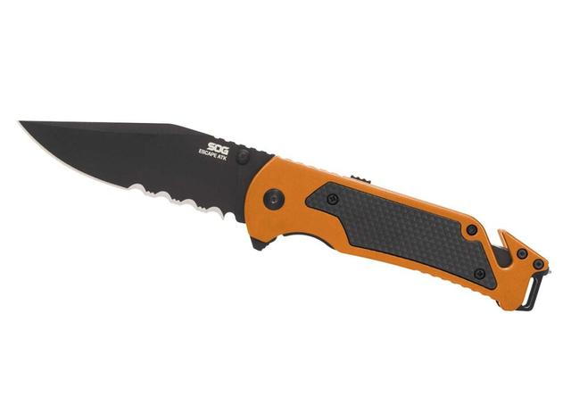 类型: 救援折刀刃长: 3.4”刃材: AUS-8 不锈钢叶片机构: 辅助开启柄: 6061 铝锁:内衬锁口袋夹: 低位携带重量: 4.4 ozs.闭合长度: 4.6”更多信息: 刀柄里有刀片和玻璃破碎器;备用刀片储存在手柄里产地: ChinaMSRP: $54.95公司: SOG Knives