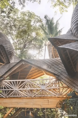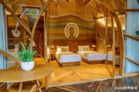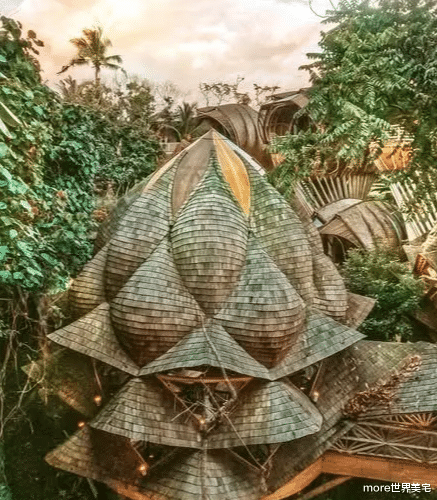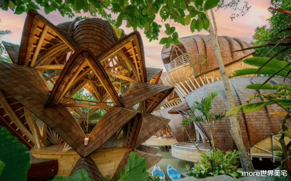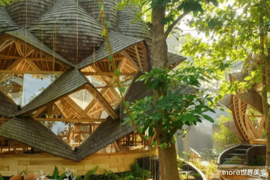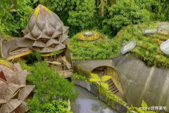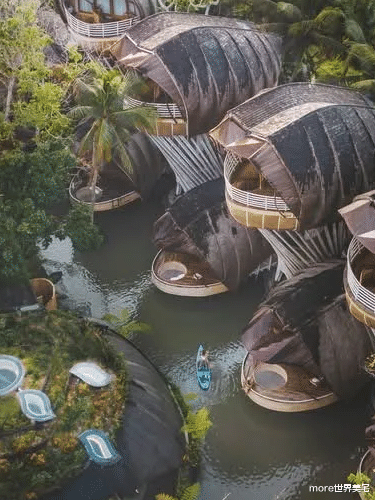 在印度尼西亚的凯德里,乌拉曼生态豪华度假村(Ulaman Eco-Luxury Resort)以其独特的建筑设计和奢华的