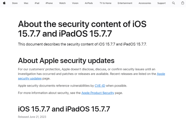 About the security content of iOS 15.7.7 and iPadOS 15.7.7 - Apple Supporthttps://support.apple.com/en-us/HT213811