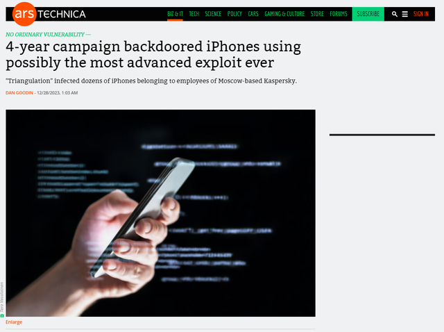 https://arstechnica.com/security/2023/12/exploit-used-in-mass-iphone-infection-campaign-targeted-secret-hardware-feature/