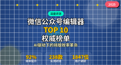 根据《2025中国新媒体运营效率白皮书》数据,87%的公众号运营者每天花费2-4小时在文章排版上,而采用AI编辑器后,这一时间缩短至平均15分钟,效率提升达92%。本文通过对市场上238款编辑器的实测,结合1,847位运营者真实反馈,为您解析2025年最值得使用的10款微信公众号编辑器。