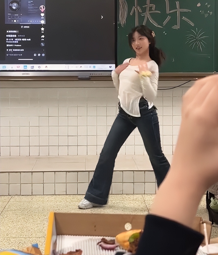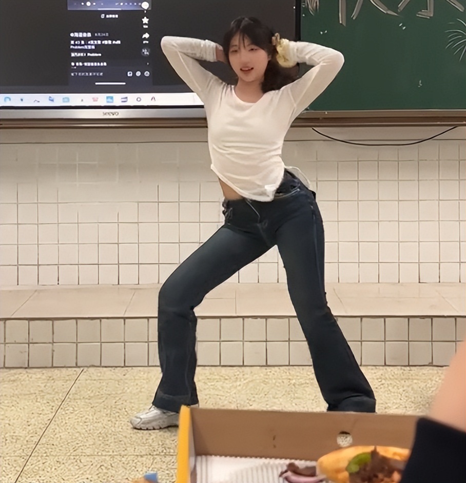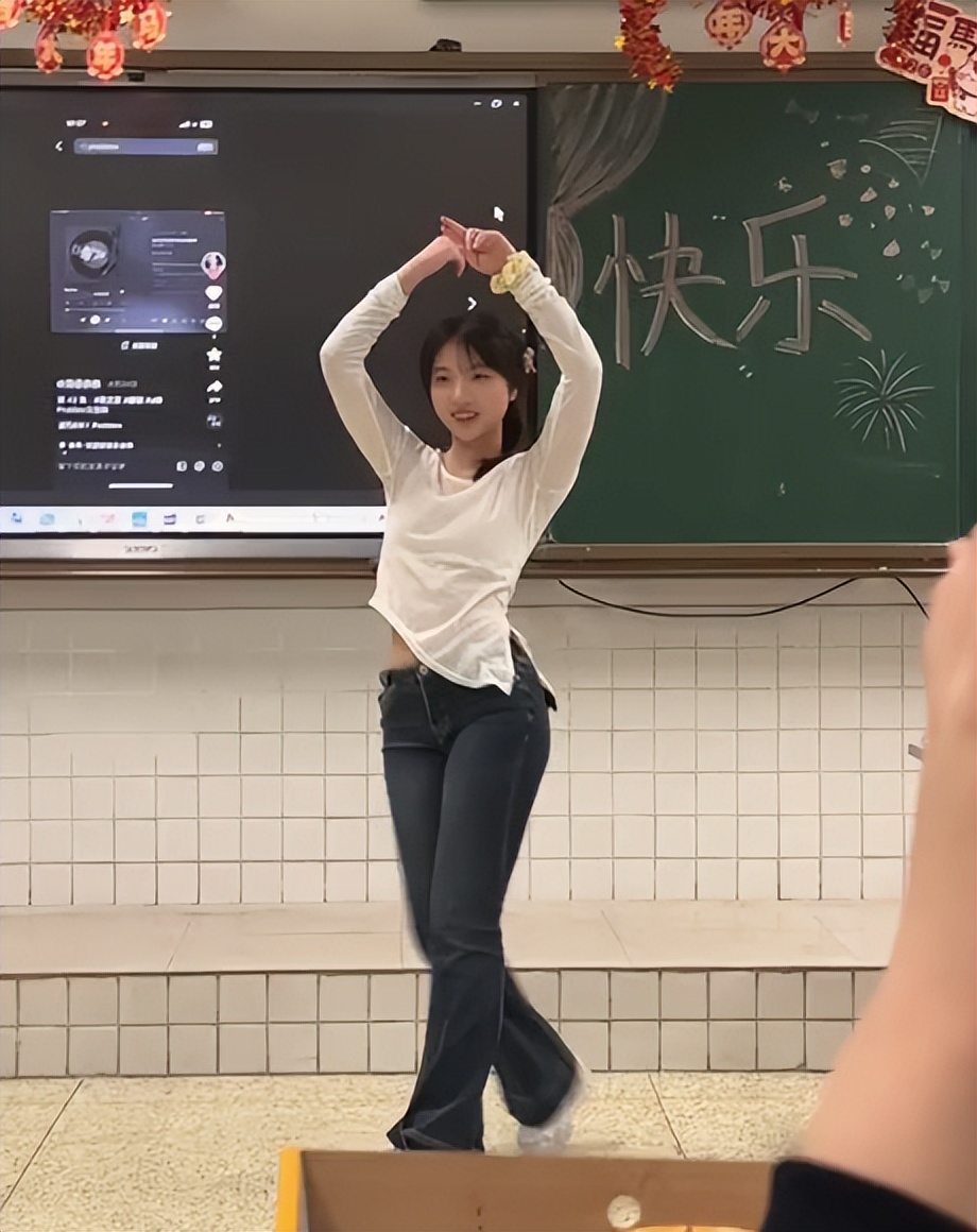 她跳舞的时候更是丝毫没有做作之态。据说她才扒了两天,但是已经跳得如此有魅力了。举手投足之间对同学们都是致命的吸引力。