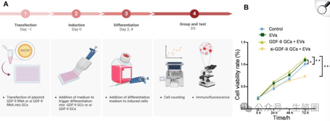 然后他们通过基因工程技术,将GDF-9的基因递送到这些干细胞,使它们过表达GDF-9蛋白。