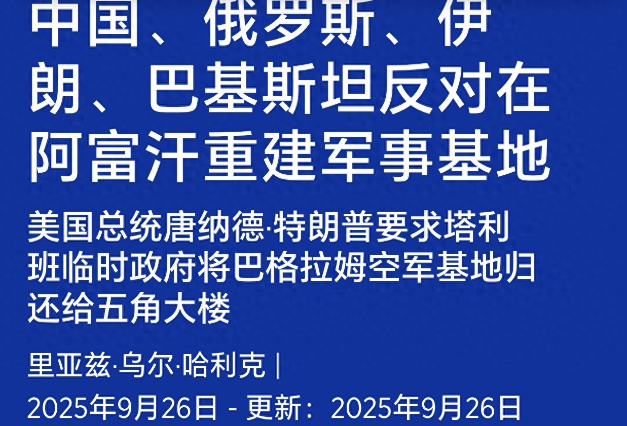 特朗普在大概一周前称,美国要拿回位于阿富汗的巴格拉姆空军基地,理由是阿富汗距离中国较近,可能受中国地缘政策影响。该基地是由苏联最初建设,在2000-2021年美国侵入阿富汗后,美军对基地进行了扩建。到了2021年,由于战争成本高涨,且美国为了顺应其签署的要在2021年底实施从阿富汗全面撤军承诺的多哈协议,最终匆忙撤离 ,甚至留下了很多美军空军装备,阿富汗当地武装也得到了一点实力增强。