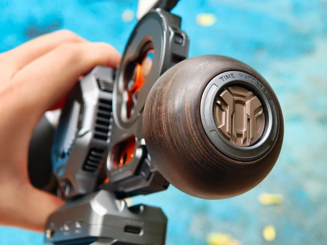 我超喜欢这个装在顶部的(横向时左手握持)的圆形木制侧手柄,由于iPhone17 Pro支持等效100mm的四倍光学物理变焦和OIS光学防抖,拍摄远处动态物体只要扎个马步稳住身形,双手紧紧握住两侧手柄,就可以稳如泰山拍摄远物了。