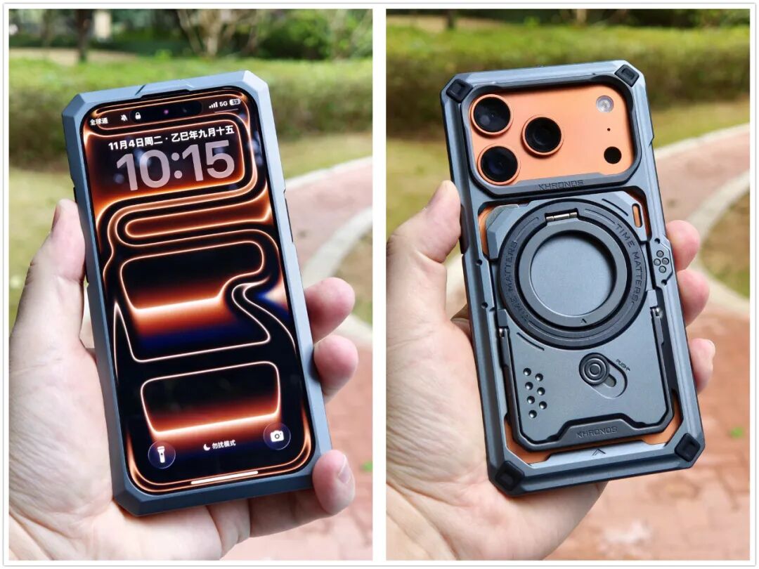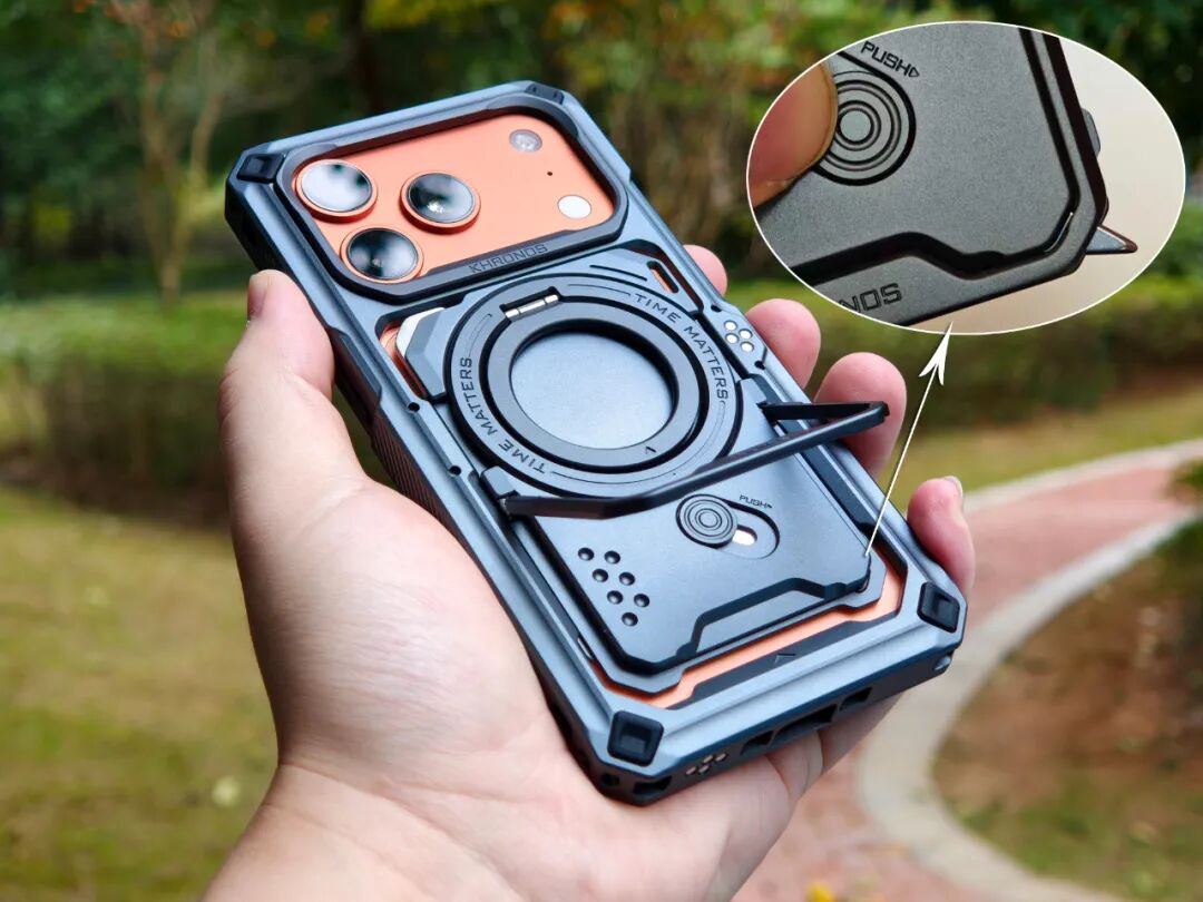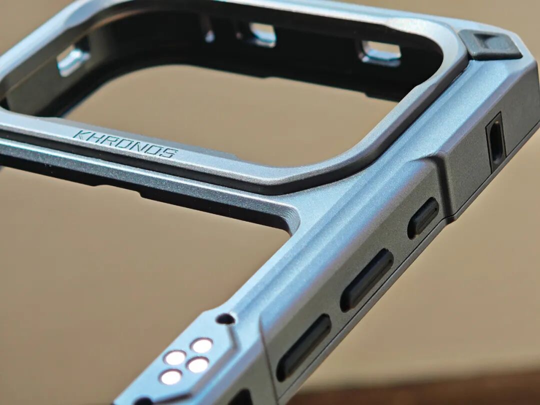 这次的专业手机壳是KHRONOS第三代产品,在金属材质的基础上,还采用了纳米级微弧陶瓷膜技术,不仅带来陶瓷触感,还极大强化了手机在户外拍摄场景的防摔性能。