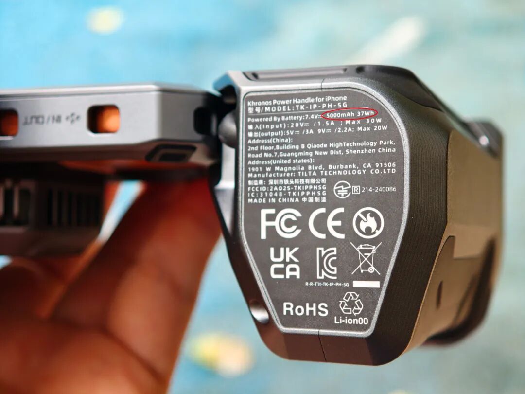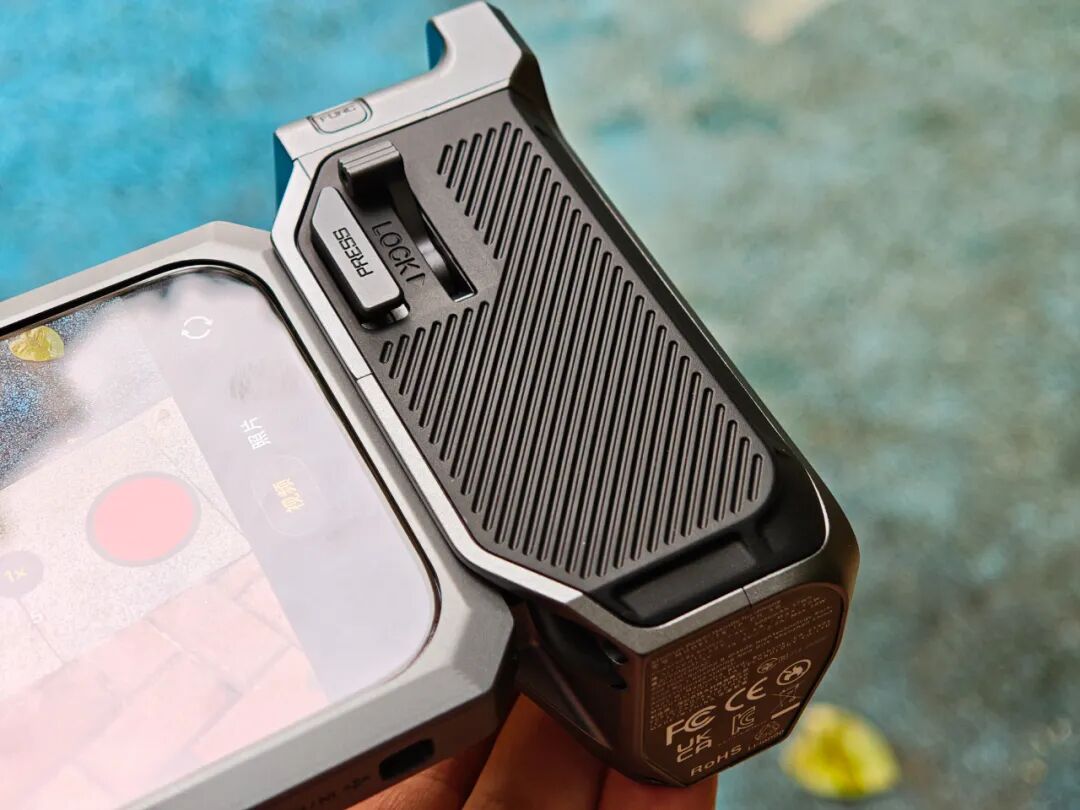 我拍了一张外壳材质特写,视觉上是哑光质感,触觉上是温润触感,相比纯铝合金材质更耐磨,按键内侧还有橡胶条。更猛的是,这个手机壳内部还自带隐藏电路,通过触点连接配件,真正构建了一个模块化移动影像的生态。