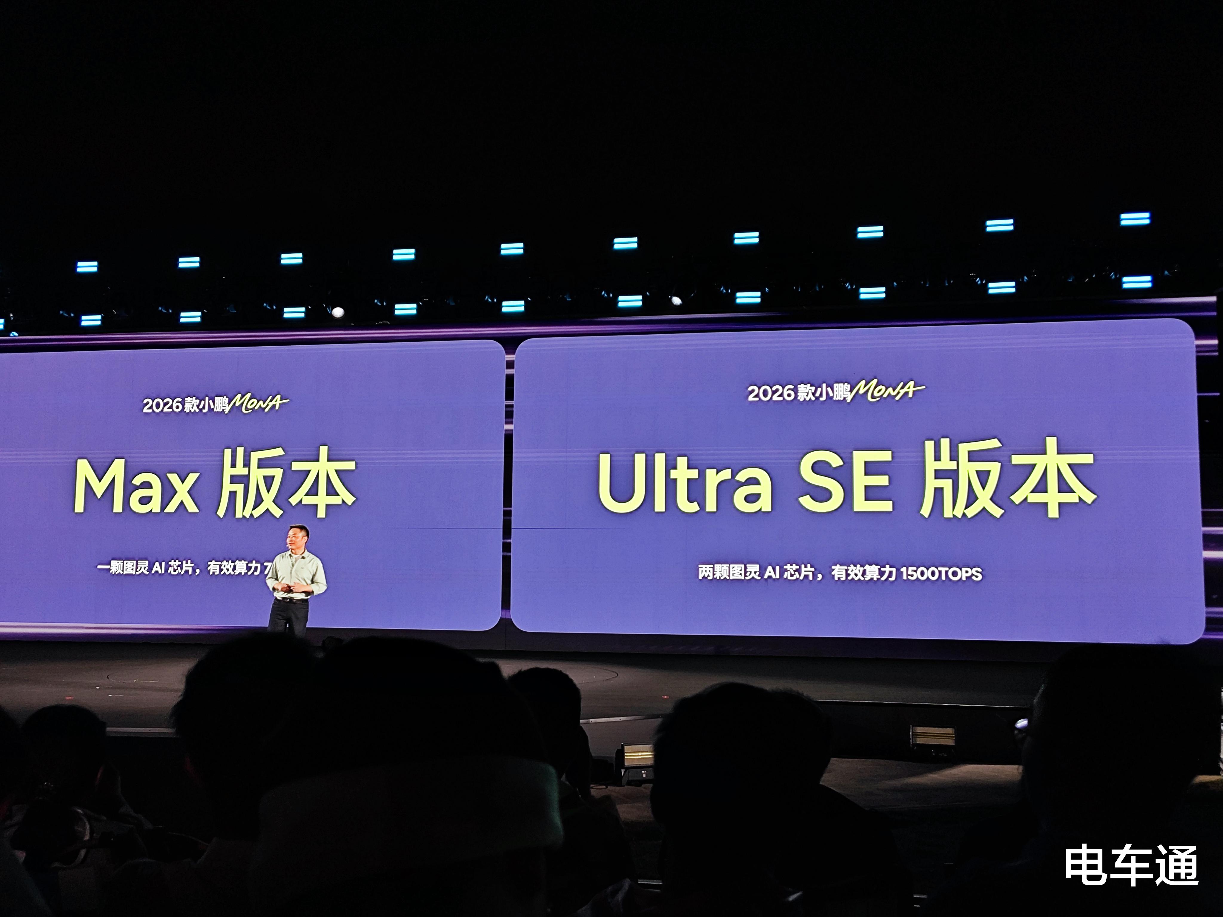 小鹏这一次没有「挤牙膏」,直接在2026款MONA M03上提供了双算力方案,Max版搭载单颗图灵AI芯片(750TOPS),Ultra SE版更是配备双图灵AI芯片(1500TOPS)。