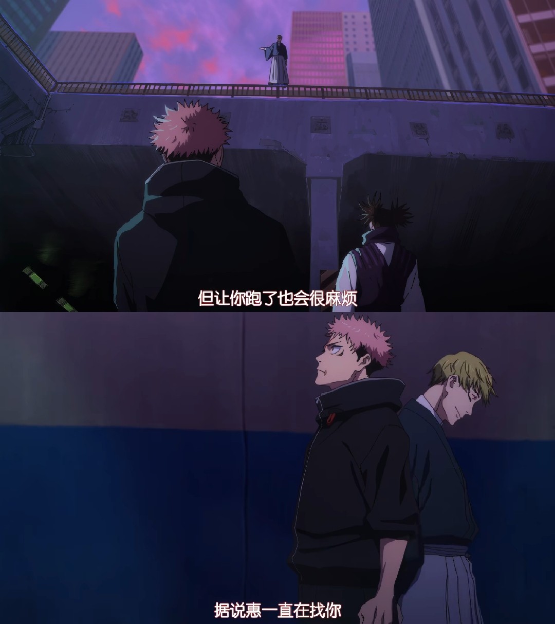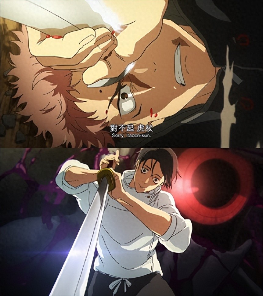所以叠了那么多甲后,白糖想说的就是,直哉在动画中的形象,至少在白糖看来,是十分不讨喜的。当然我们也可以理性来看待这个角色在后文的作用,也就是第二话后半段,为什么乙骨忧太要救下他,就是因为他想要完成与咒术高层的束缚,除了“杀死过”虎杖悠仁外,还需要一个保险,目前作为咒术师方身处东京的直哉就成为了乙骨忧太的保险,为了之后复活虎杖而不被视作束缚失效,也就是需要“禅院直哉向上头汇报虎杖悠仁的死讯。”
