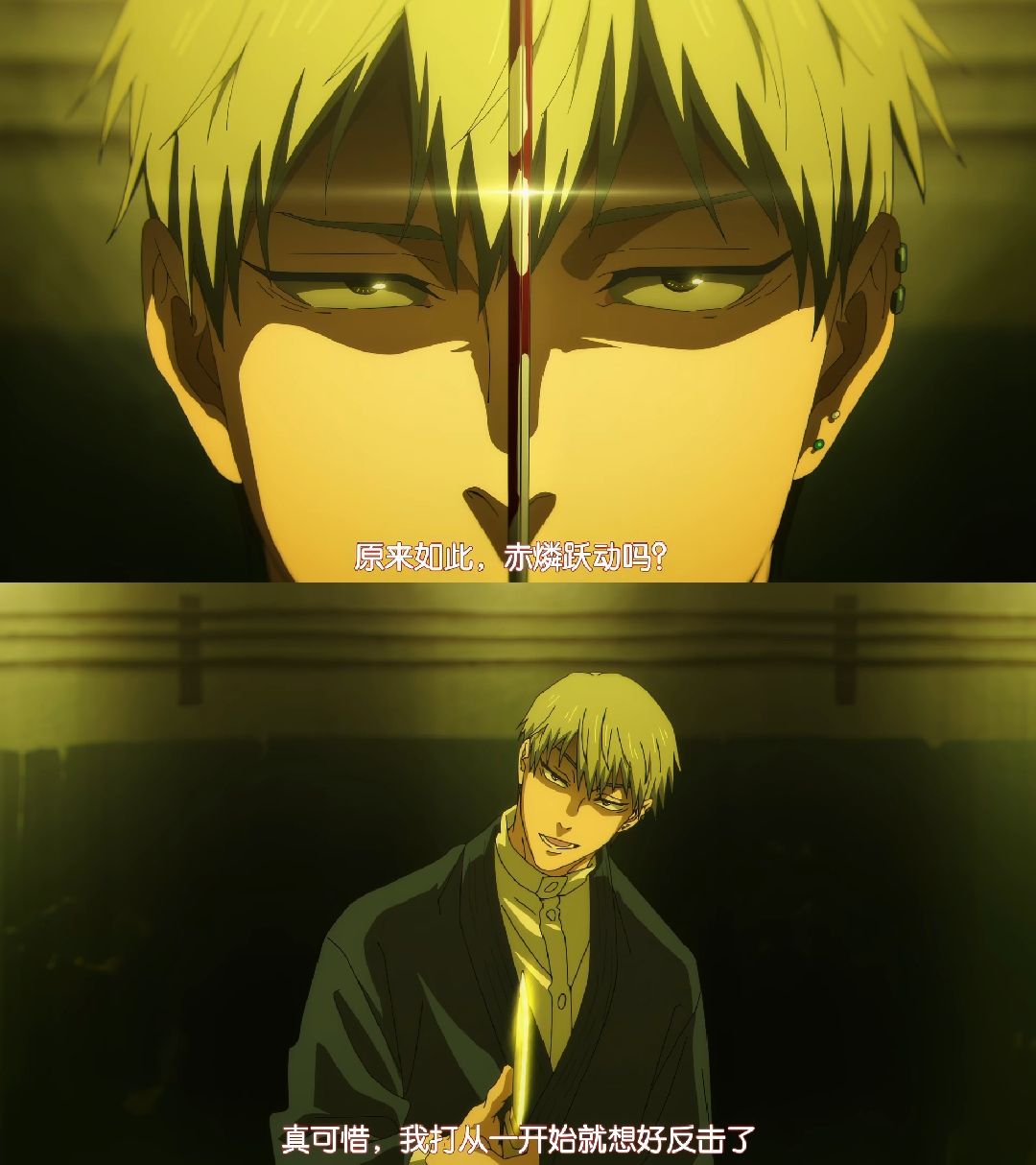 掌握情报差的直哉甚至掏出了大多数咒术师们不屑于携带的武器,再加上此时动画主色调为直哉的黄色,原本就压着胀相打,现在还捅了欧尼酱一刀,胜利的天平基本上倾向了直哉。甚至还有闲工夫和胀相聊上了对兄弟的看法。