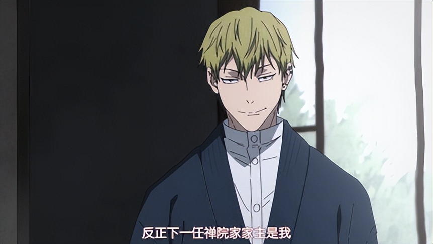接着就切到下一个镜头了,说实话白糖看到这还是有一些懵圈的,直到关于“禅院家”、“真希”等熟悉字眼出现在明白,现在的视角是家主禅院直毘人战死后的禅院家,而这个说着“当不了男人背后的女人活该遭到背叛”的厌女黄毛,是家主之子禅院直哉。