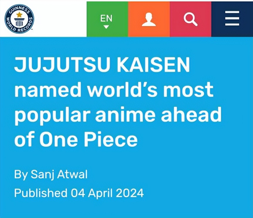 吉尼斯世界纪录,“世界上最受欢迎的动画电视节目”--MAPPA社 《咒术回战》