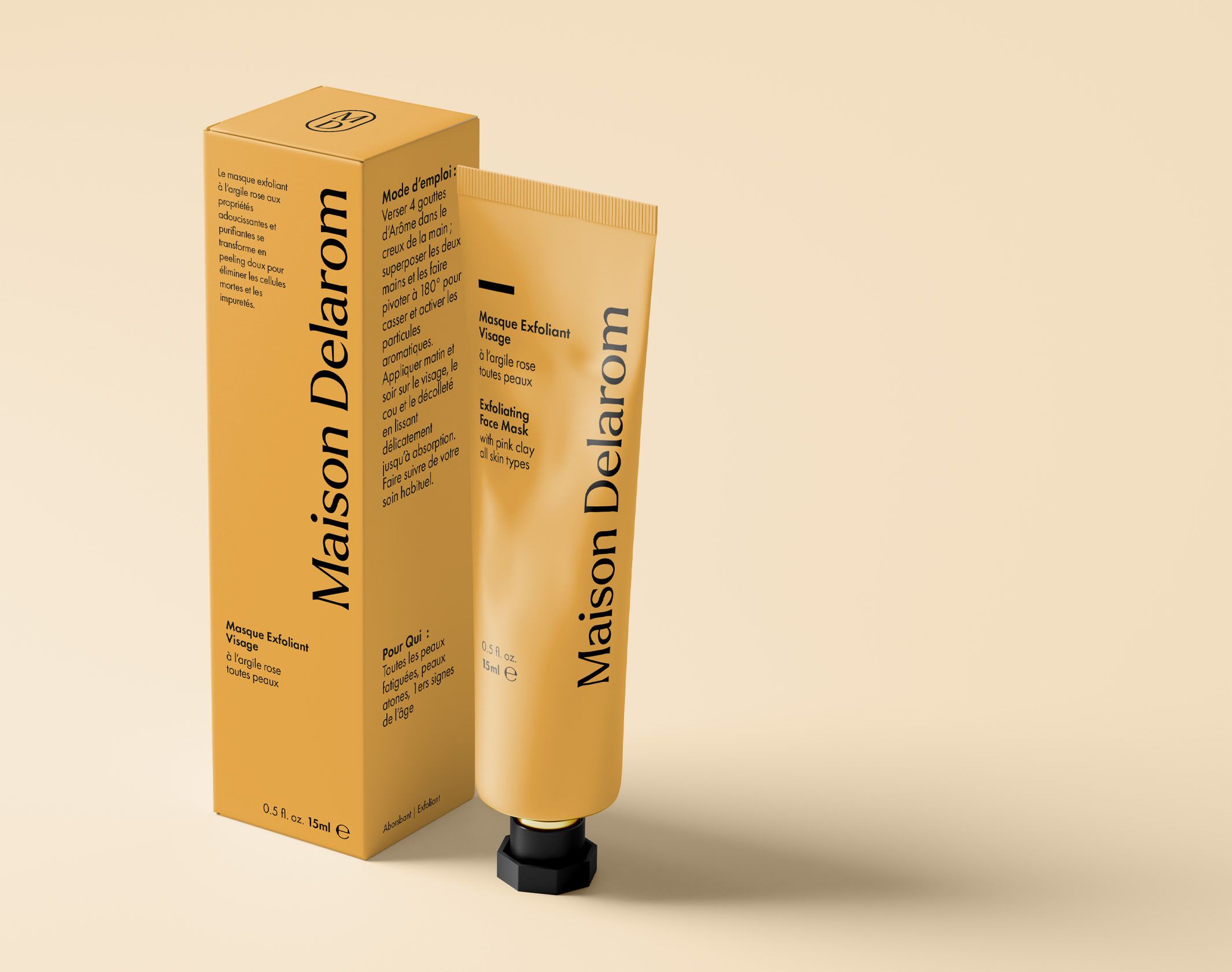 包装整体采用了温暖的橙黄色调,这种色调不仅给人一种温馨、舒适的感觉,还传递出品牌对自然、健康的追求。管状和瓶状的包装设计简洁大方,没有过多的装饰,却处处透露着法式美学的精致与细腻。包装上的文字排版整齐有序,信息清晰易读,与整体设计风格相得益彰。无论是放在梳妆台上还是拿在手中,都能让人感受到一种高品质的生活态度。