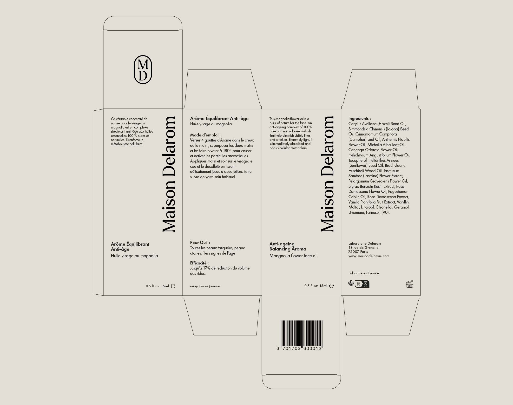 Maison Delarom的包装设计宛如一位优雅的法式淑女,散发着高贵与精致的气息。其LOGO以简洁的椭圆形外框包裹着“M和D”两个字母,线条流畅而优雅,仿佛是品牌专属的优雅印记,低调却又极具辨识度。