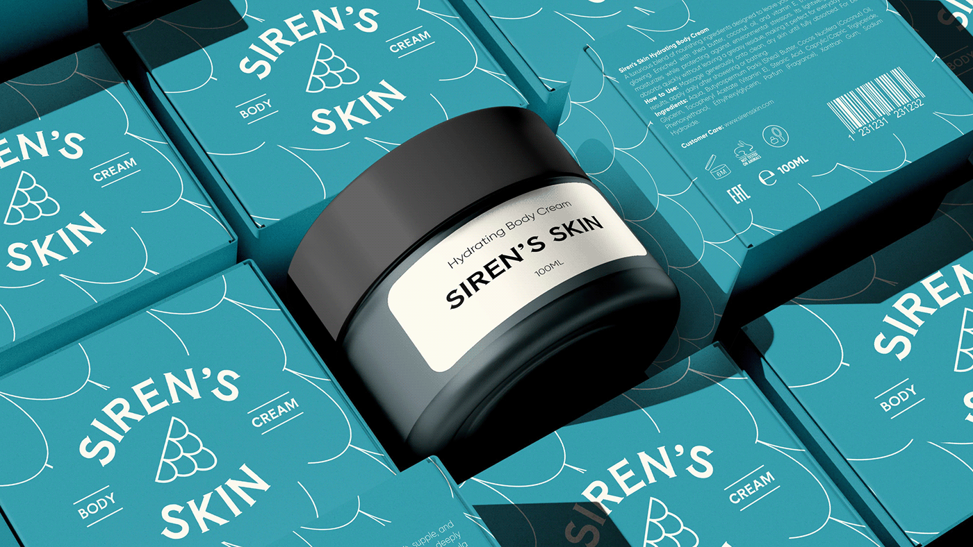 SIREN'S SKIN的品牌LOGO充满了神秘的艺术感,“SIREN'S SKIN”字样以独特的字体呈现,中间搭配的图形仿佛是海洋中的神秘符号,又像是美人鱼的鳞片,瞬间将人带入一个充满奇幻色彩的海洋世界。