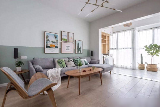 首先是“视觉扩容术”。我家客厅和阳台通铺浅灰色木纹砖,没有门的隔断,从沙发一眼望到阳台的绿植,100平的房子硬是看出120平的效果。装修师傅说,小户型最适合这招——地面用同材质,墙面刷同色系,阳台瞬间“长”进客厅里。