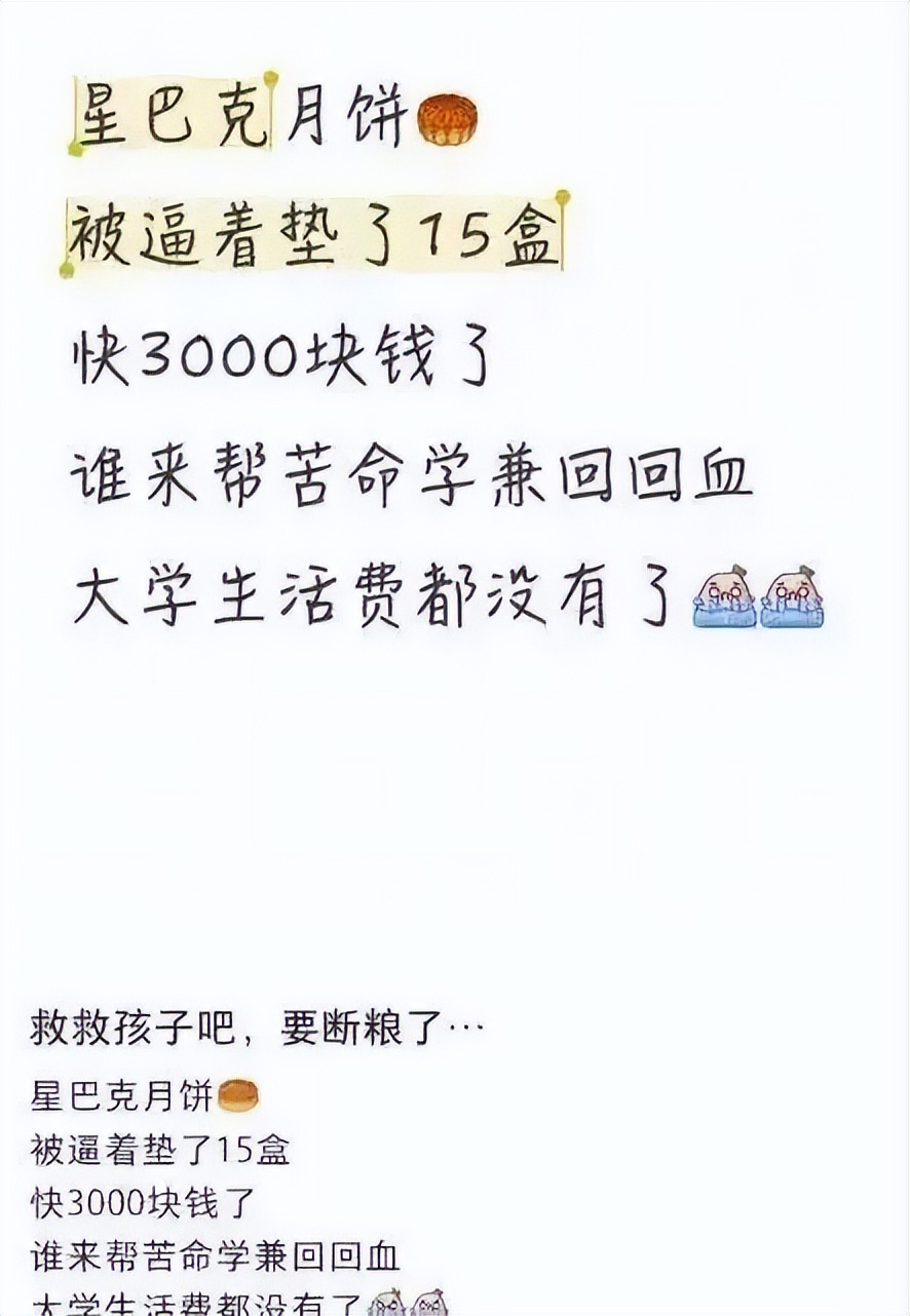 这并个例。多位自称星巴克员工的网友纷纷在社交平台“吐槽”,称在销售星巴克月饼过程中承受较大压力,甚至出现自掏腰包购买月饼的情况。