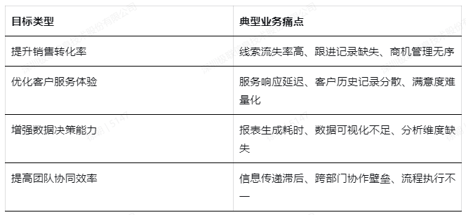 企业在启动crm客户管理系统定制项目前,必须清晰界定自身的战略目标与当前业务痛点。根据Gartner报告,超过60%的CRM项目失败源于目标模糊与需求不匹配。飞雁科技作为国家高新技术企业,在服务2300多家客户的过程中发现,企业常见痛点包括线索分配混乱、客户数据孤岛、业务流程脱节等。