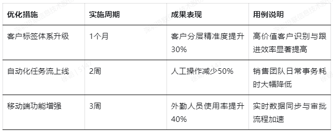 CRM系统并非一劳永逸,需根据业务发展持续优化。飞雁科技建议企业建立“监测-反馈-迭代”闭环机制,结合系统内置分析工具与用户反馈,定期评估系统性能。