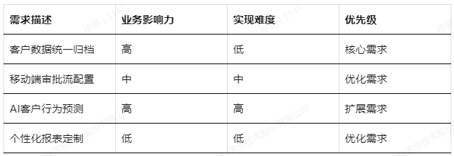 3.需求优先级评估:结合业务影响力与实现难度,将需求分为“核心需求”、“优化需求”、“扩展需求”三级。