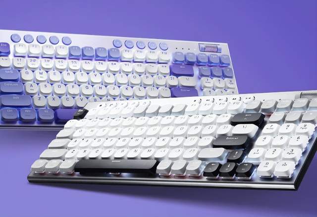 开学什么东西比较好卖?支持蓝牙、2.4 GHz和有线三种连接方式,可轻松在电脑、平板、手机间切换,办公、娱乐或课堂使用都方便。96%设计保留数字区和功能键,同时比全尺寸键盘节省桌面空间,对鼠标操作区域更友好。PBT键帽耐磨防油、敲击手感沉稳,上盖铝合金提升整体质感,看起来比同价位普通键盘更扎实。内置约1900 mAh电池续航较好,白光背光在暗光环境下有实用性,不刺眼。