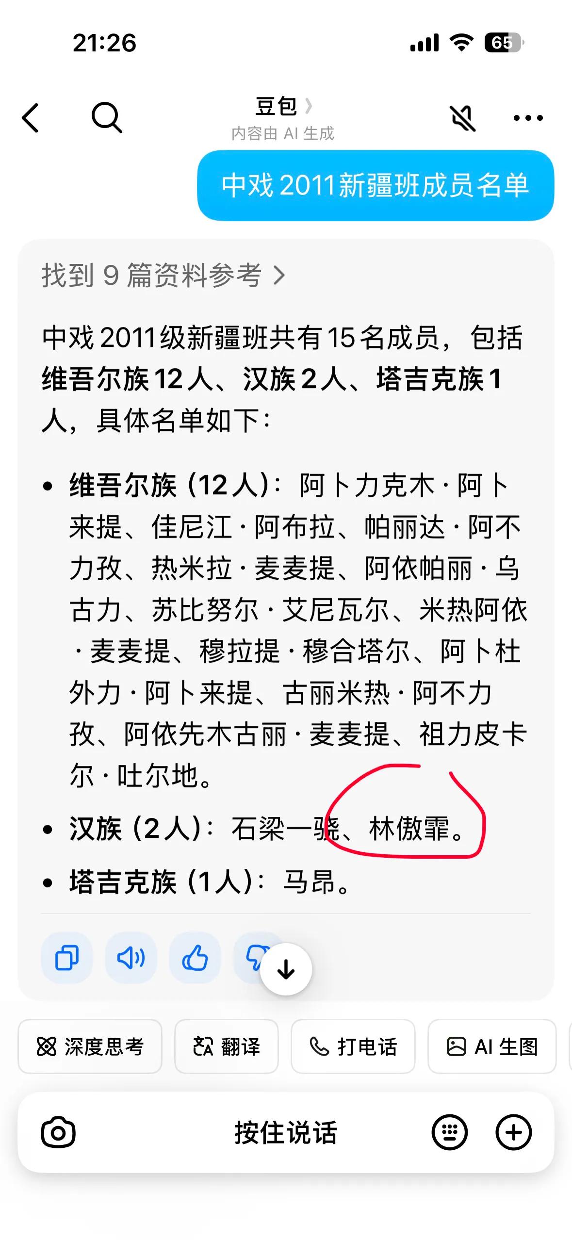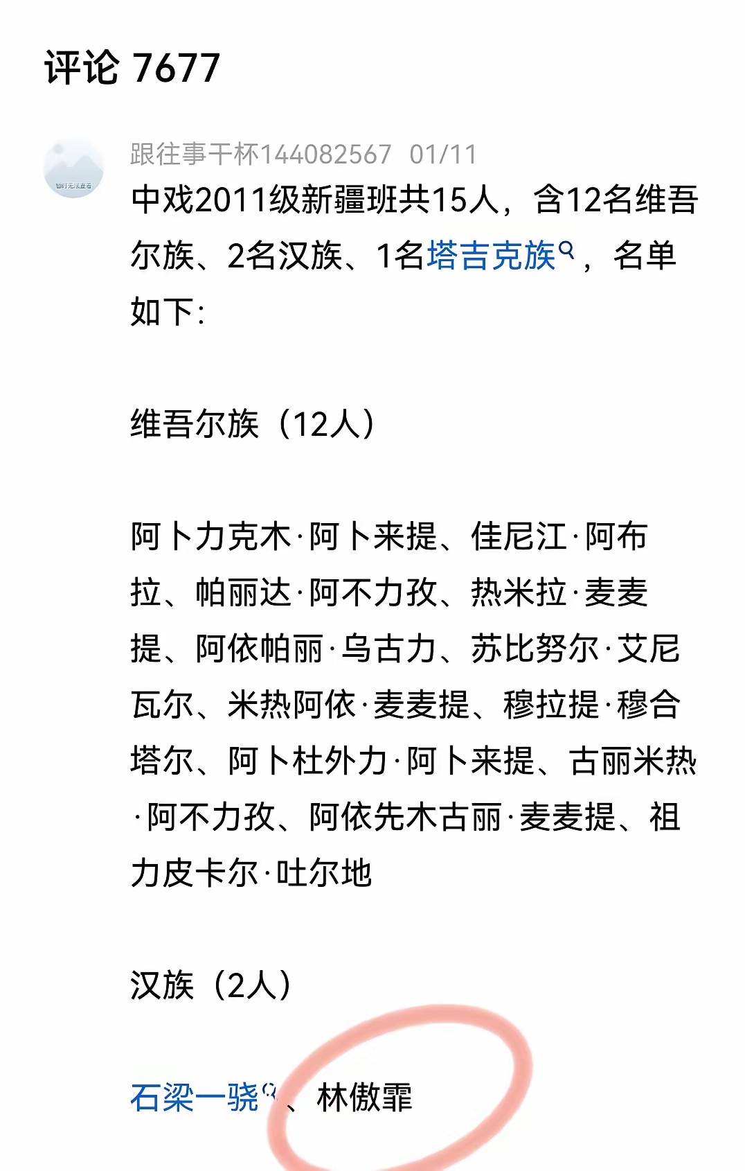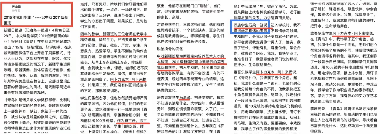 有网友通过豆包,查出了中戏2011新疆班的同学名单:有两名汉族同学。