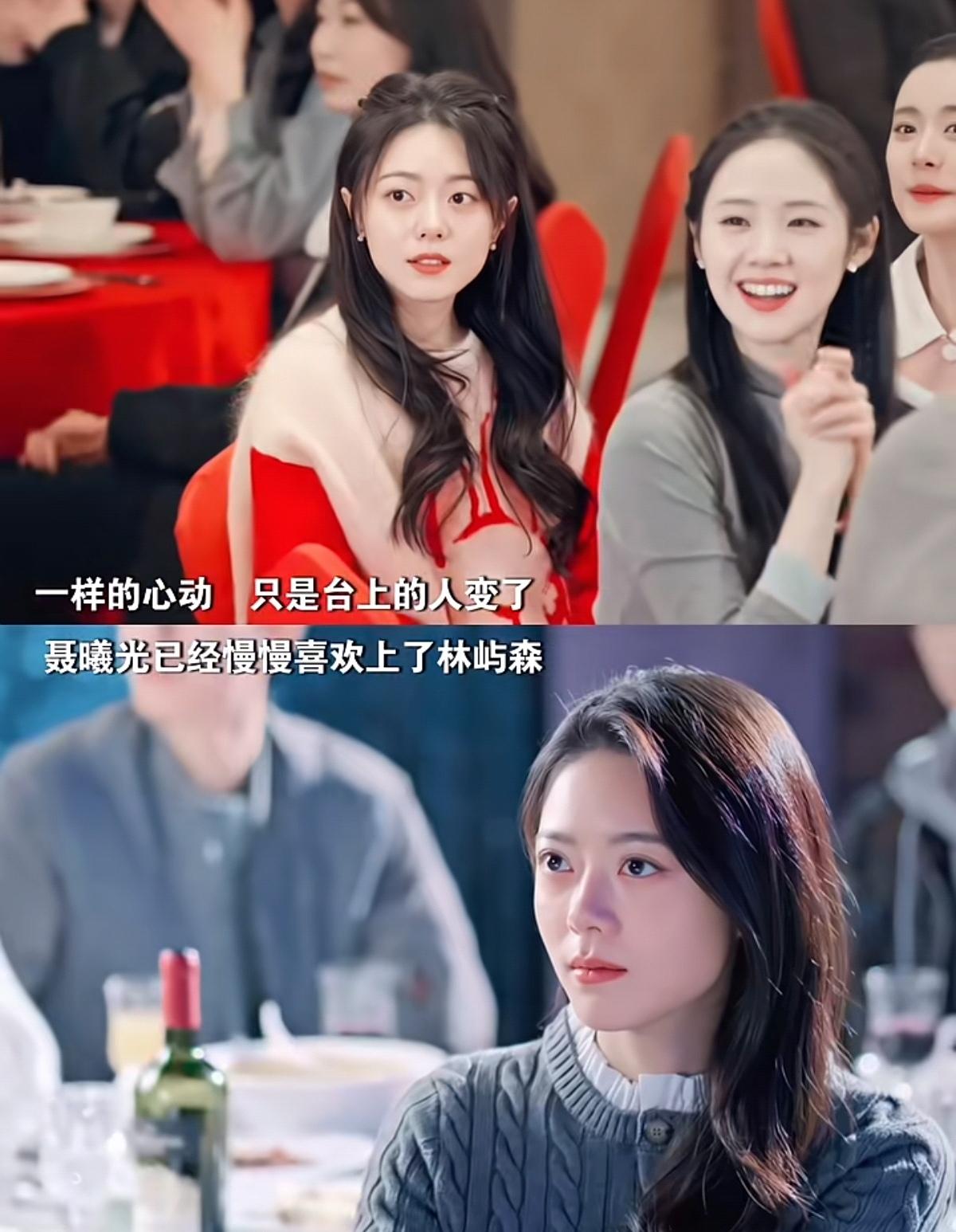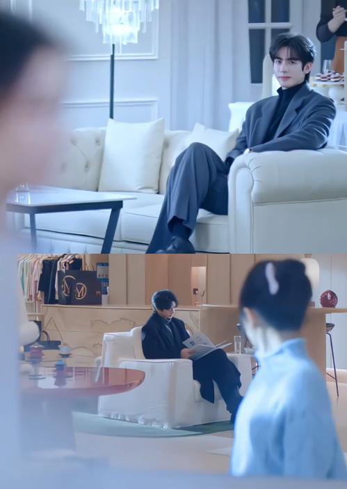 林屿森带着聂曦光去参加朋友婚礼前,他带着聂曦光去买衣服,当时店员给聂曦光推荐的是蓝色的毛衣,还特意给聂曦光盘一个发型,这次,林屿森坐在沙发上看杂志,可聂曦光却先看向林屿森。