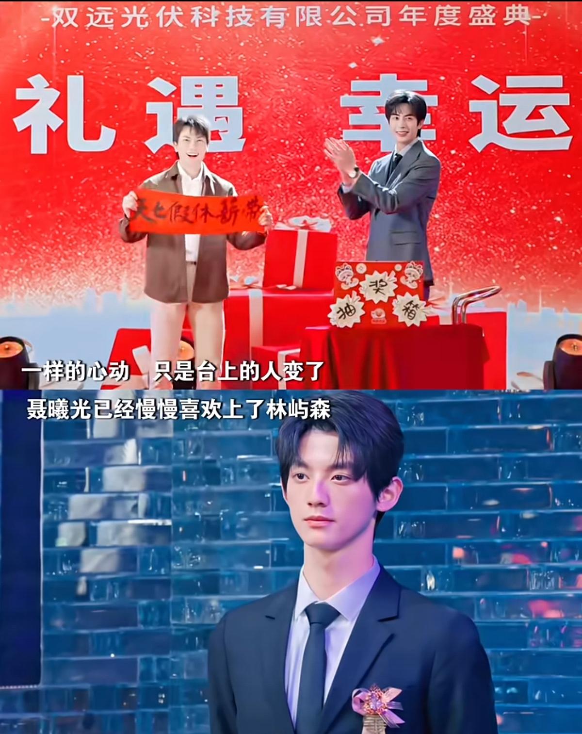 聂曦光带着林屿森去参加室友晚会的时候,庄序在台上当伴郎,当时聂曦光看向庄序,但年会的时候,聂曦光看向的是林屿森,一样的心动,只不过是台上的人变了,同样的剧情,直接做到前后呼应,透露聂曦光的心理变化。