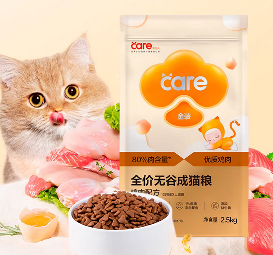 好主人是通威旗下的国货老品牌,成立于2000年,是国内最早进入宠粮行业的;品牌定位大众亲民,产品定价实惠,尤其适合预算有限的养宠家庭。这款金装好主人猫粮是品牌主推的产品之一,主打无谷低敏,核心原料用的是脱水鸡肉和金枪鱼,含量高达80%,精准适配猫咪的肉食天性,整体的营养也很扎实。