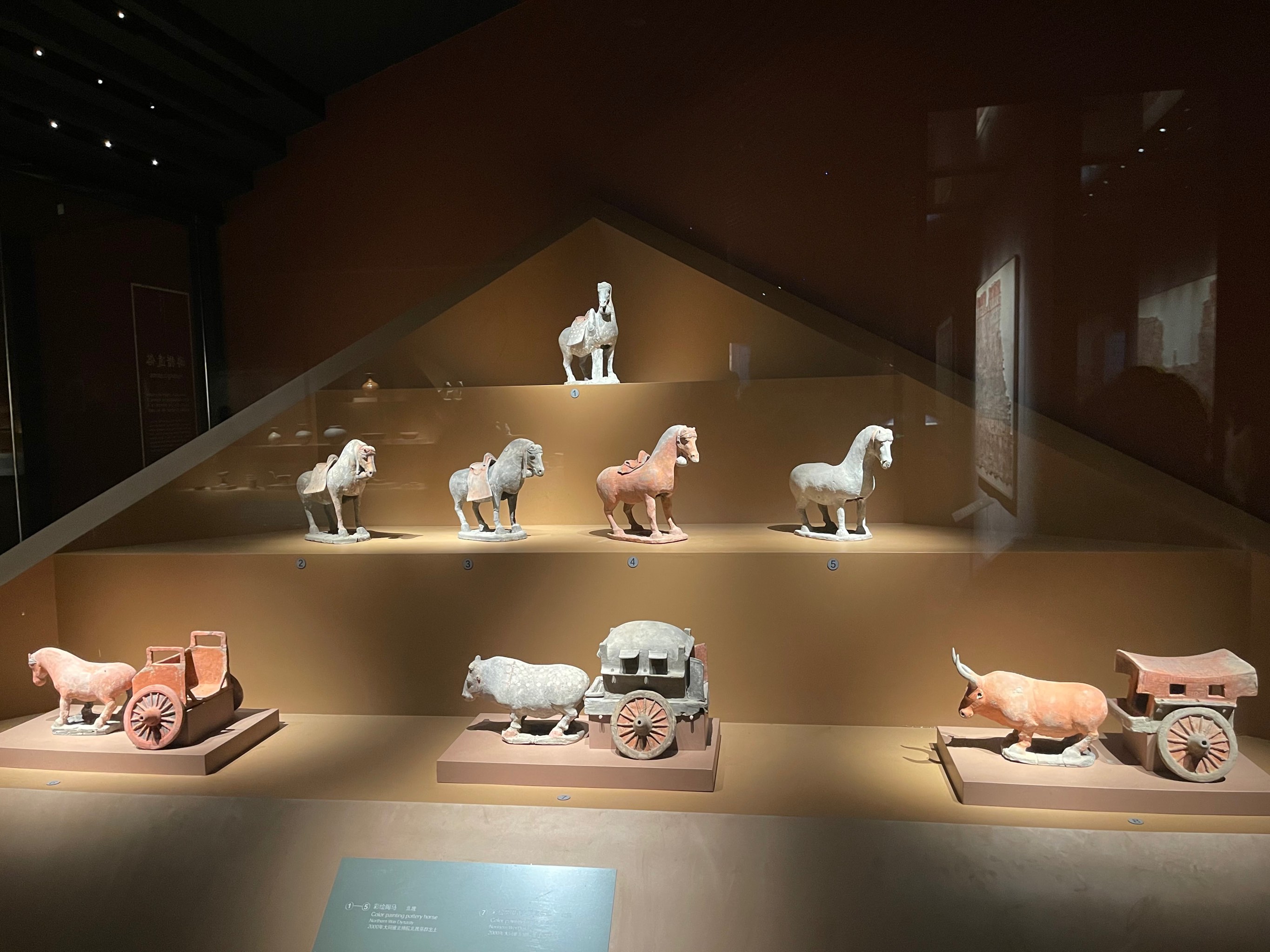陶俑军阵:100余尊北魏骑兵俑列队而立,甲胄细节清晰,连马镫的皮绳纹路都保留下来,还原了“北魏虎师”的骁勇。