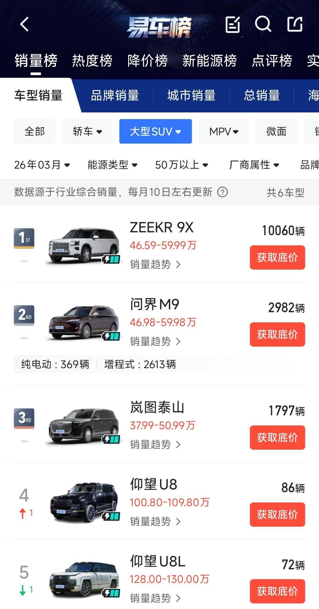 谁能想到,一款均价超53万的国产新能源车,三月单月卖了10060辆,还能连续5个月拿下50万级大型SUV销冠......极氪9X真的是凭一己之力把豪华SUV市场的桌子掀了!