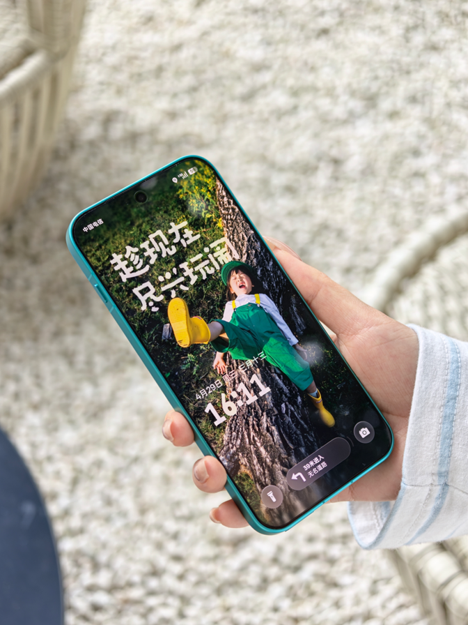 关键它边框也挺窄的,看着是真舒服~而且锁屏也有新变化,居然不用解锁就能看导航地图、听歌切歌,倒计时…这可比其他手机的锁屏体验方便太多了。
