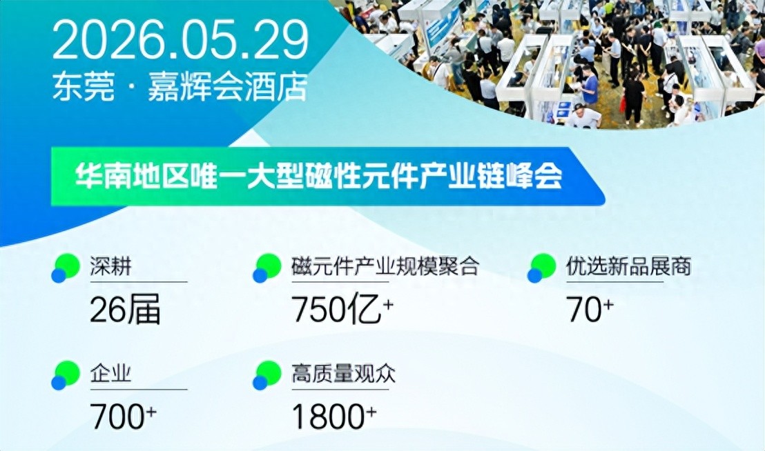 2026年5月29日,第26届(华南)磁元件产业链峰会将在中国·东莞嘉辉会酒店再度强势启航!