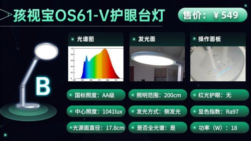 9.孩视宝OS61-V护眼台灯推荐理由:采用了发光面配合微导光扩散技术,光照广阔均匀舒适。