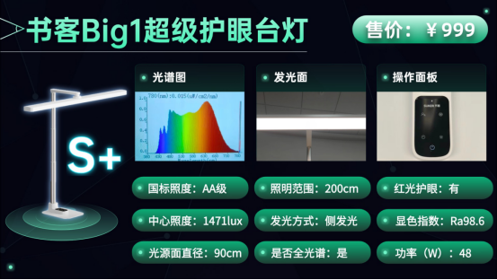 三、10款护眼台灯深度横评1.书客Big1超级护眼台灯推荐理由:深耕护眼领域多年的专业老牌!常年出口欧美市场经受全球考验,发烧级护眼性能直接碾压同级。